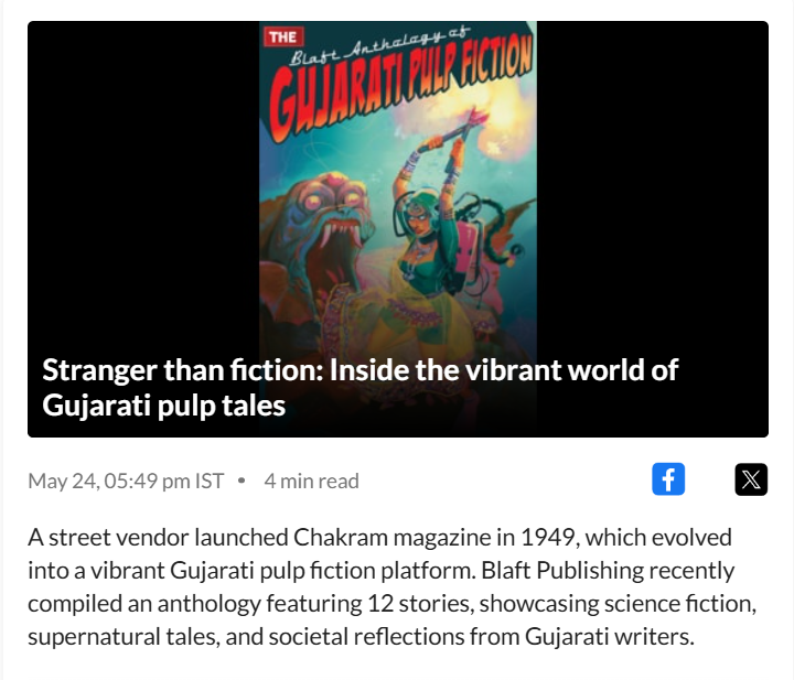 Article on Blaft Pulp Fiction anthology published in Hindustan Times (24 May 2025). Link to the book here.