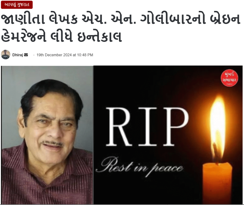 Report titled ‘H N Golibar is no more’ published in Bombay Samachar (19 December 2024). Read more here.